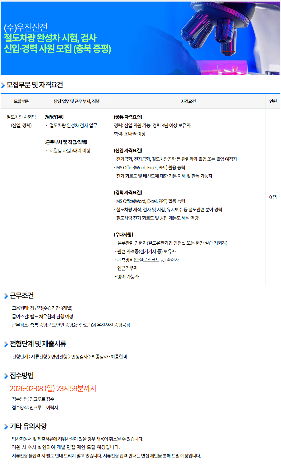 회사소개 사업분야 연구개발 홍보관 인재채용 사회공헌 KOR ENG CEO인사말 경영이념 비전 및 핵심가치 인증서 연혁 사업장 안내 철도차량 전기버스 스마트 에너지 연구소 소개 연구개발 실적 영상 카다로그 공지사항 인재상 복리후생 채용안내 채용공고